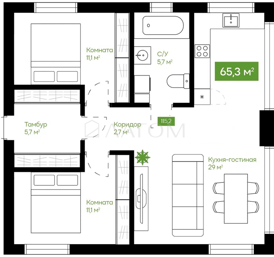 • Горизонтальная разводка холодной и горячей воды к мокрым точкам на кухне и в санузлах